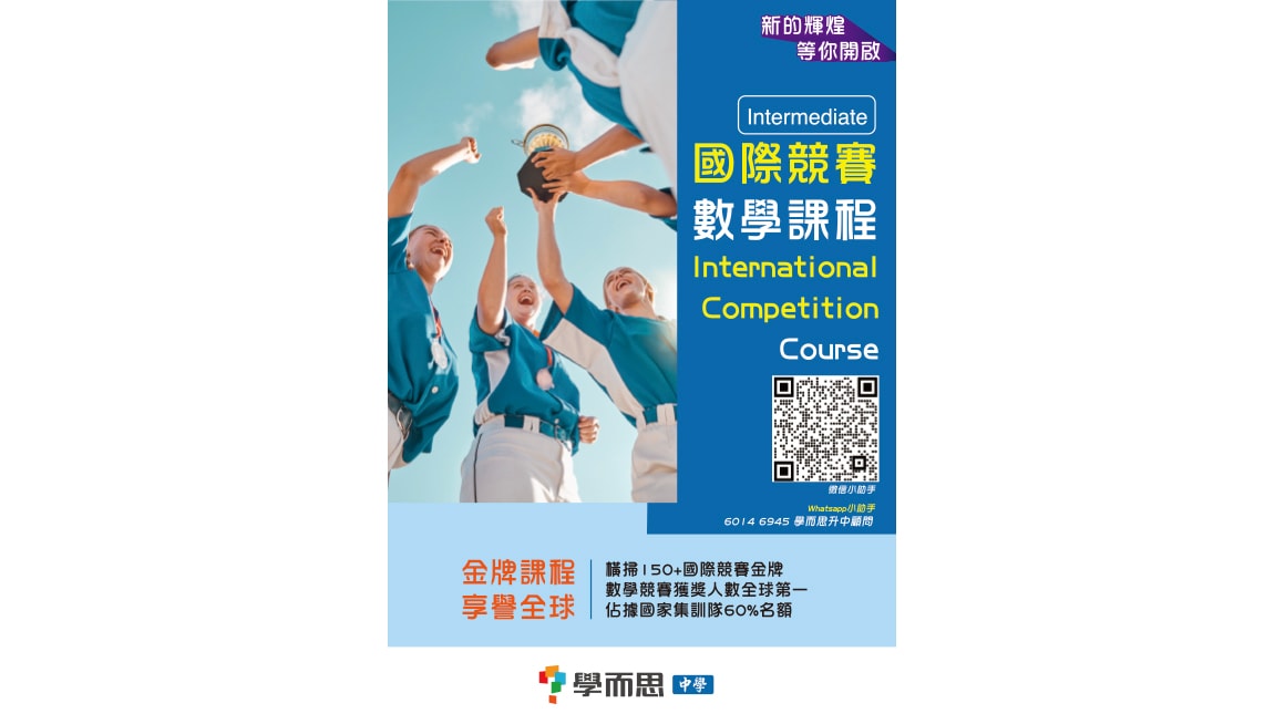 中學是新的開始,理應追求更高的目標。通過學習競賽,能讓同學們在掌握課堂知 識的基礎上,深入探討四個範疇(代數,幾何,數論,組合)100+競賽課題,獲得 超過同齡人2∼3倍的知識和技能儲備。